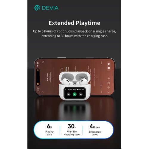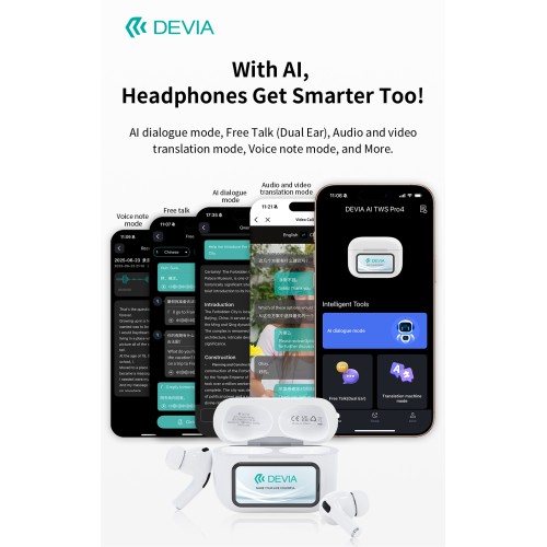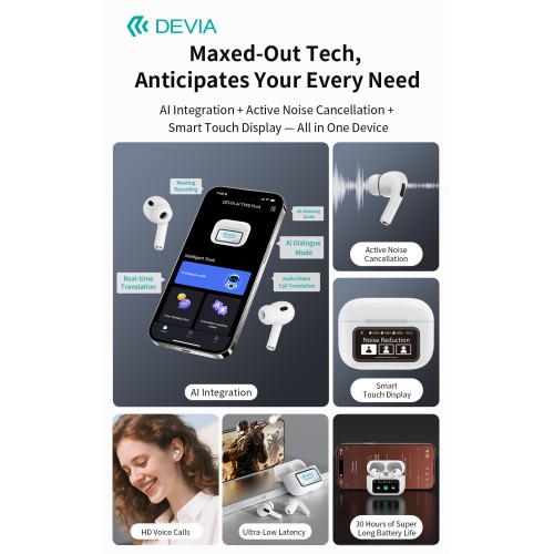 DEVIA AI TWS Pro4 – Безжични слушалки с екран, ANC и превод в реално време (164 езика)
