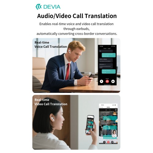 Превод на аудио/видео разговори – работи по време на телефонни и видео обаждания. Важно е организаторът на разговора да притежава слушалките и да изпрати линк на другите участници.