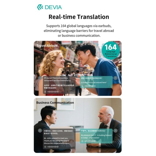 Превод в реално време (164 езика) – двупосочно, за пътувания и бизнес срещи.